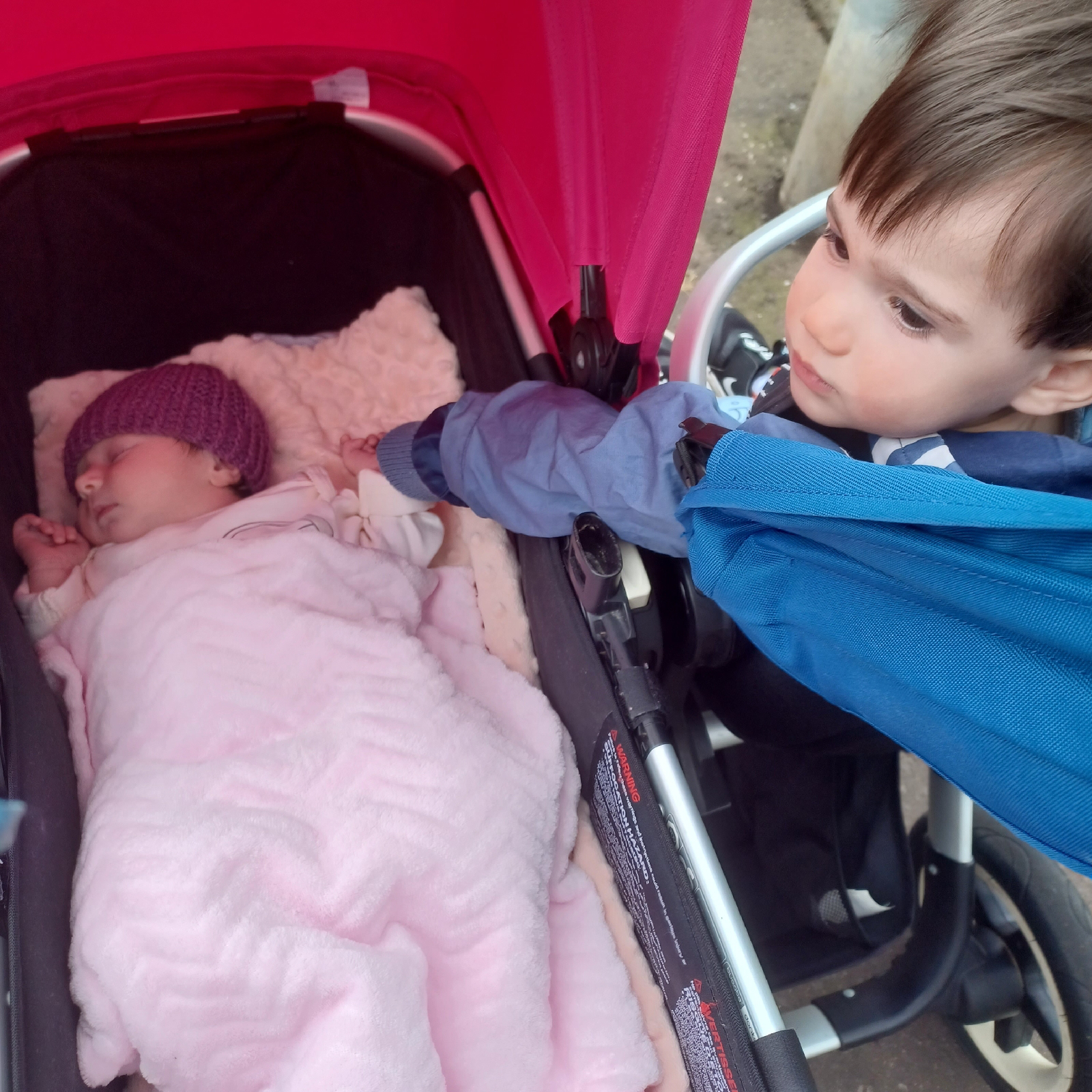 Maciuś ostatnio skończył 1.5 roku i pozytywnie mnie zaskakuje, że pomimo tego że jest jeszcze maluszkiem to już się tak ładnie interesuje siostra, a to poda jej smoczek, daje swoje zabawki, a to trzyma ja za rączkę jak jadą wózkiem.